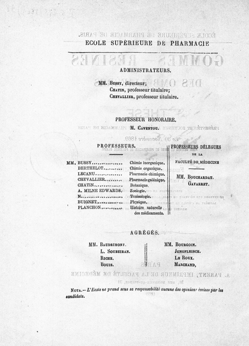 Thèse de pharmacie de Paris ,