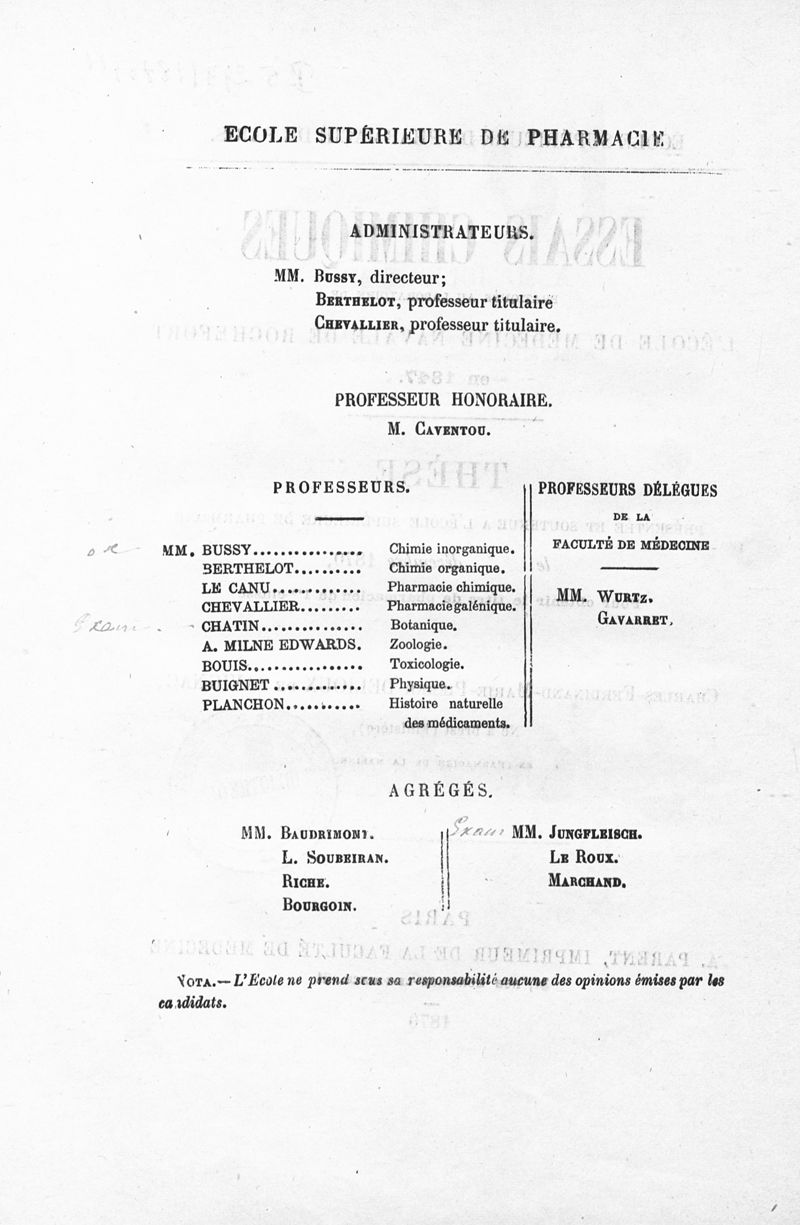 Thèse de pharmacie de Paris ,