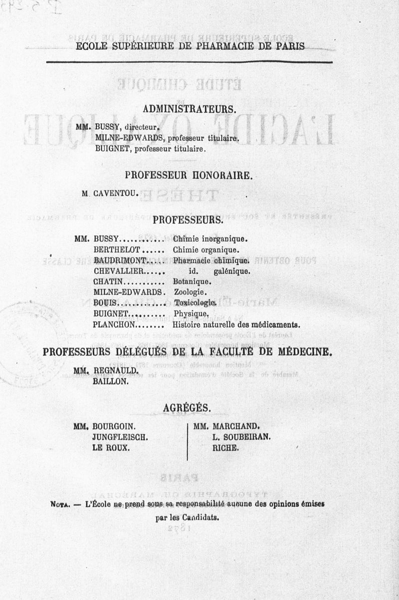 Thèse de pharmacie de Paris ,