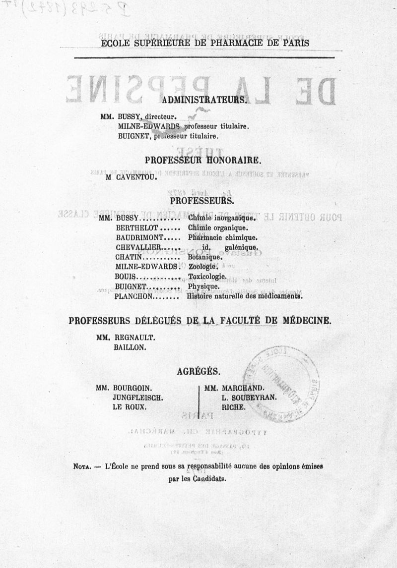 Thèse de pharmacie de Paris , 1872.
