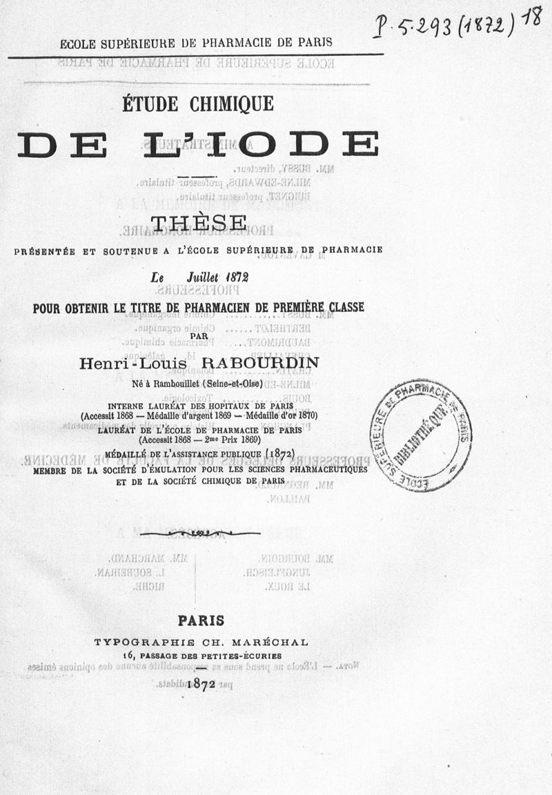 Thèse de pharmacie de Paris ,