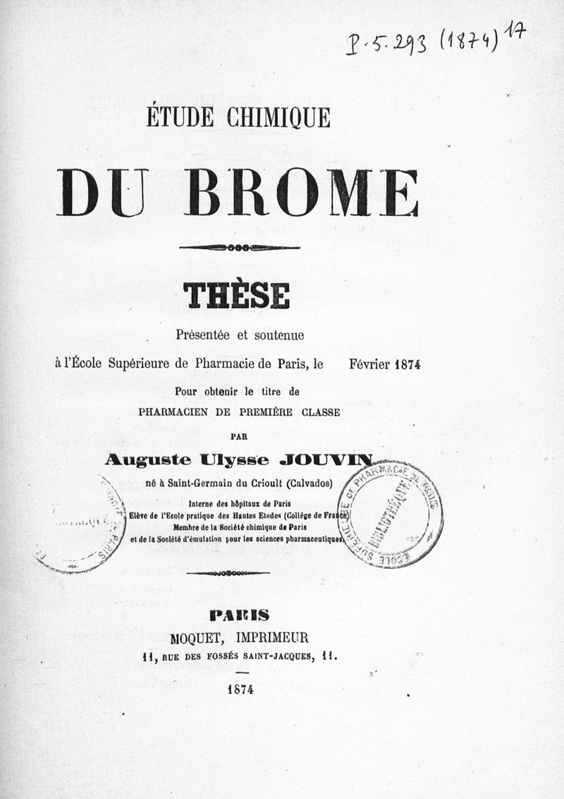 Thèse de pharmacie de Paris , 1874.