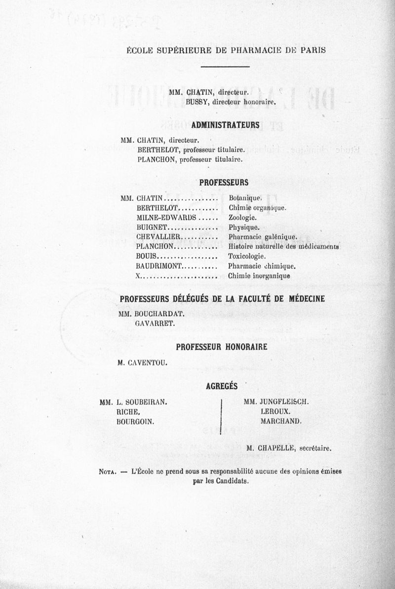 Thèse de pharmacie de Paris ,