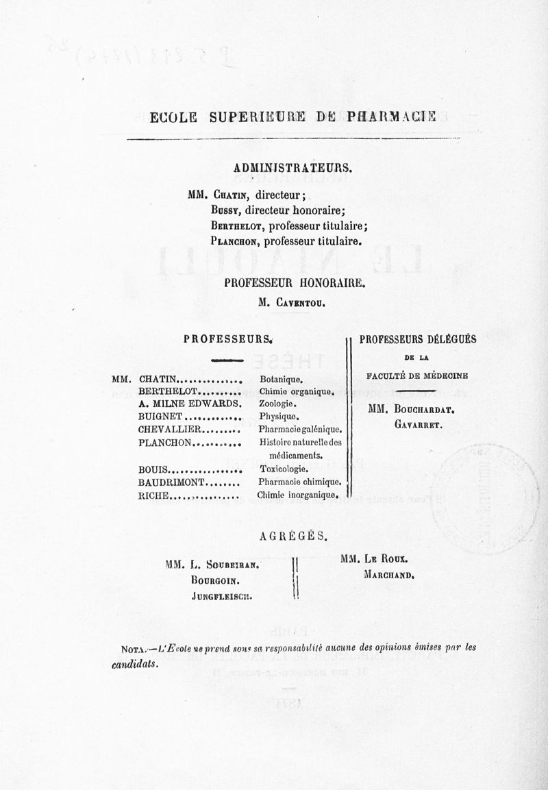 Thèse de pharmacie de Paris , 1874.