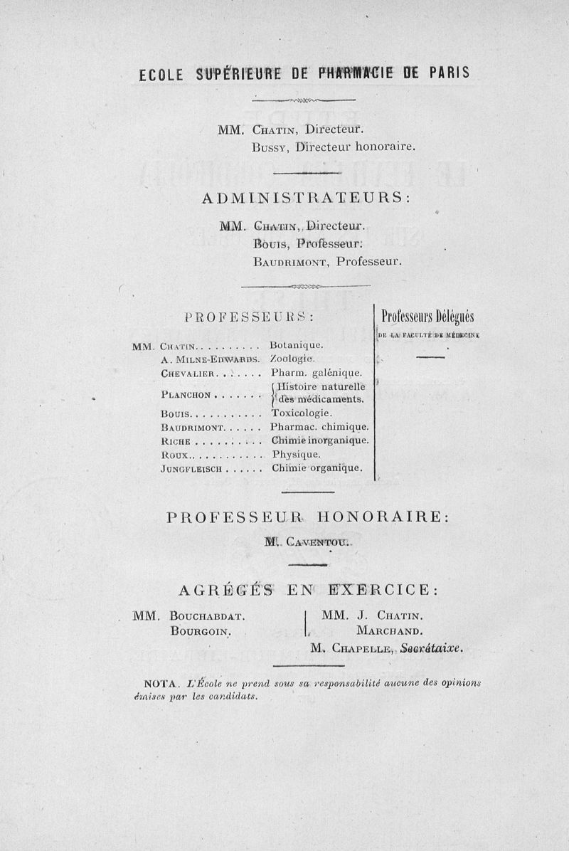 Thèse de pharmacie de Paris ,