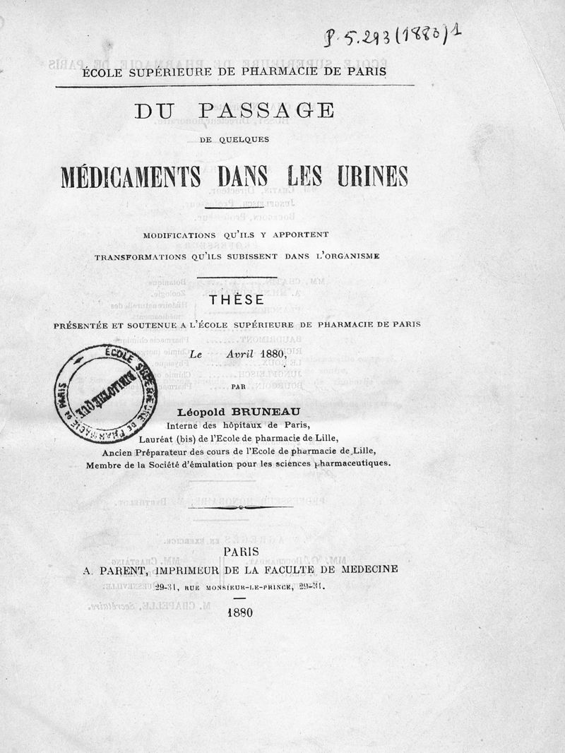 Thèse de pharmacie de Paris ,
