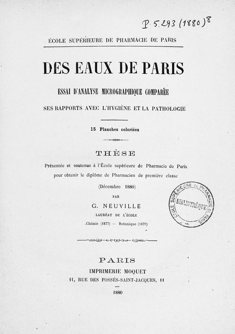 Thèse de pharmacie de Paris ,