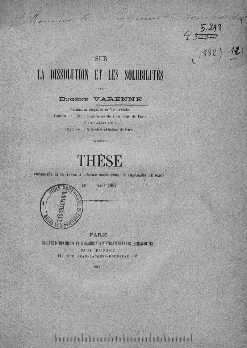 Thèse de pharmacie de Paris ,