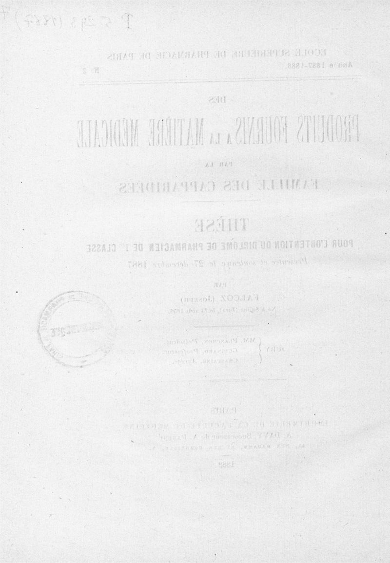 Thèse de pharmacie de Paris ,