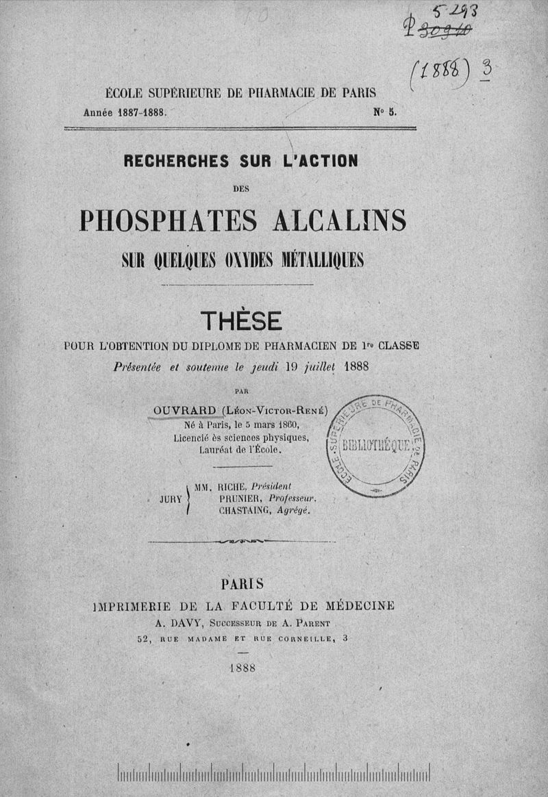 Thèse de pharmacie de Paris ,