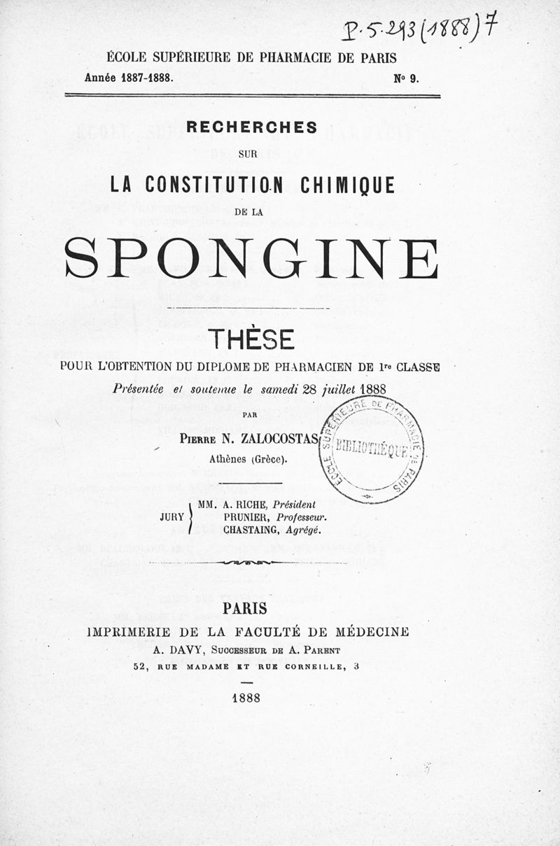 Thèse de pharmacie de Paris ,