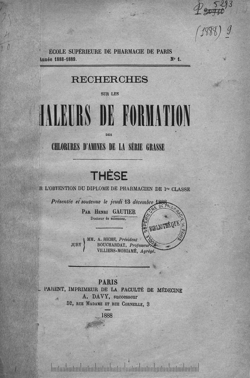 Thèse de pharmacie de Paris ,