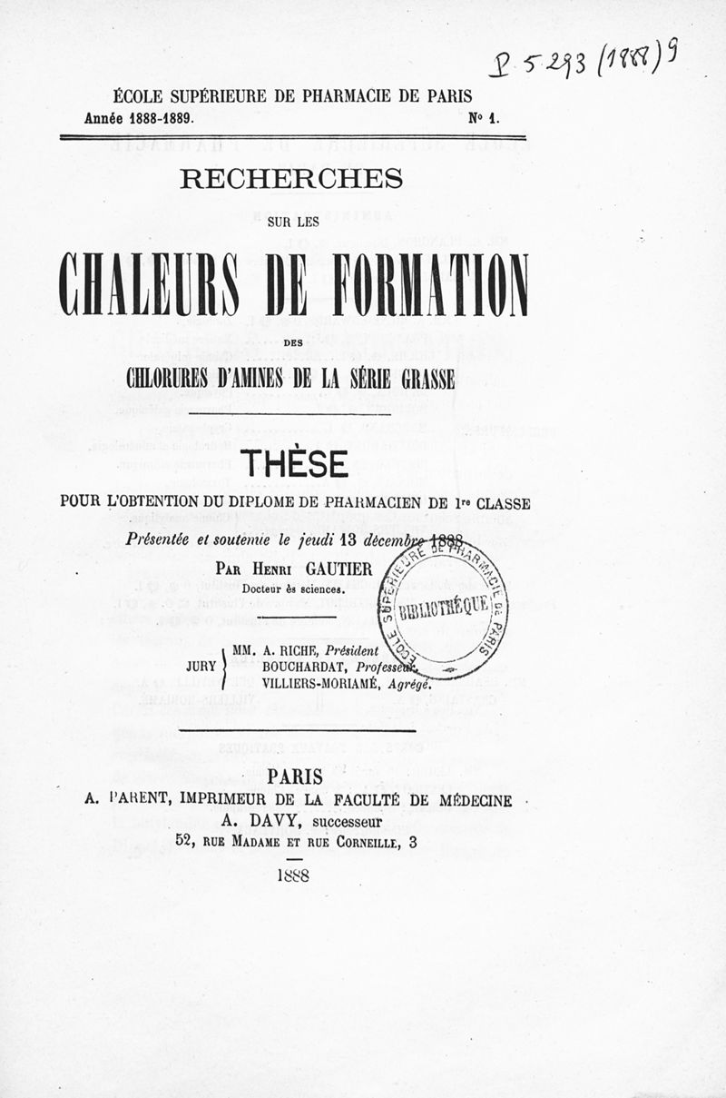 Thèse de pharmacie de Paris ,