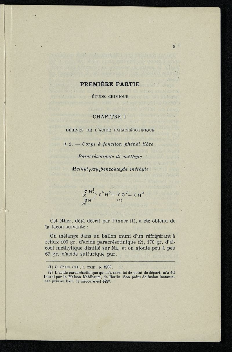 Étude chimique et pharmacologique des thymols synthétiques dérivés des acides crésotiniques