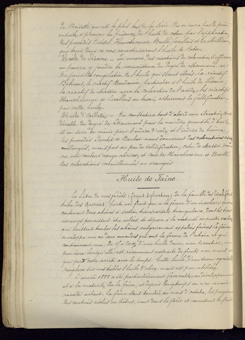 Falsifications des huiles grasses livrées par l'industrie et le commerce aux pharmaciens. Examen critique des méthodes d'analyse. Analyse qualitative et quantitative. Monographie des différentes sortes, établie au point de vue des falsification possibles, et des moyens de les déceler