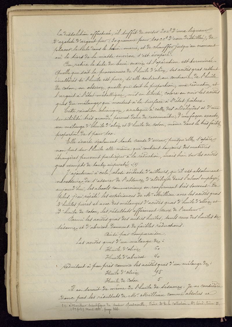 Falsifications des huiles grasses livrées par l'industrie et le commerce aux pharmaciens. Examen critique des méthodes d'analyse. Analyse qualitative et quantitative. Monographie des différentes sortes, établie au point de vue des falsification possibles, et des moyens de les déceler