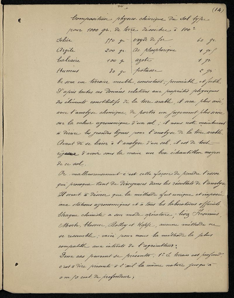 Études physico-chimiques des terres arables