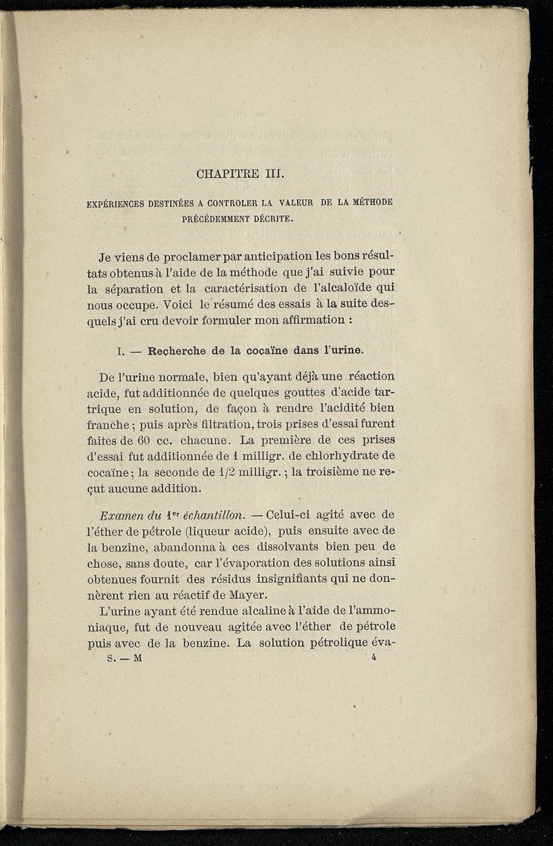 De la recherche toxicologique de la cocaïne