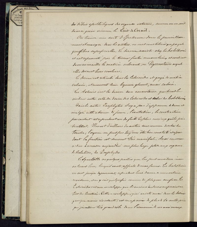 Faire l'histoire des zoophytes en s'attachant spécialement à l'étude des espèces et des produits employés en pharmacie. Exposer les opinions qui ont été émises sur la nature de la coralline blanche et de la mousse de Corse
