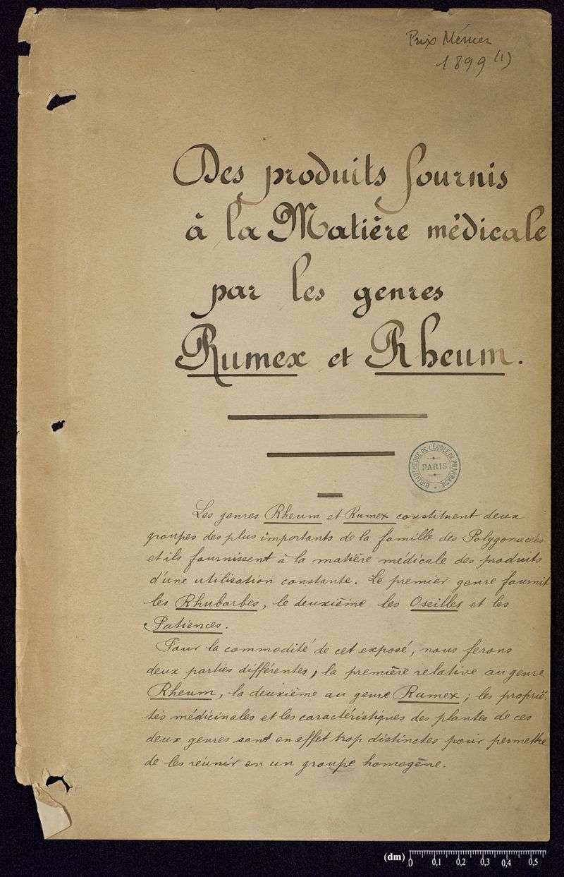 Des produits fournis à la matière médicale par les genres Rumex et Rheum