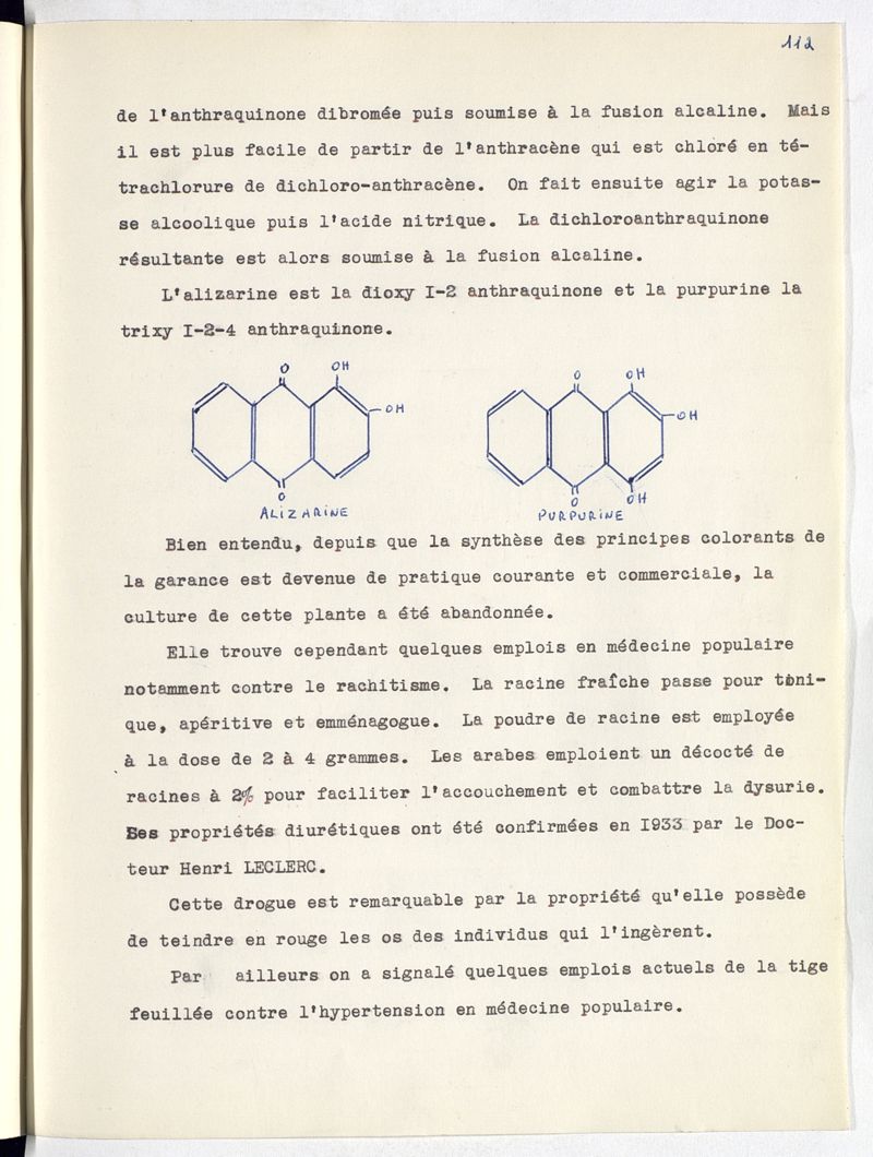 Les plantes indigènes à principe quinoniques