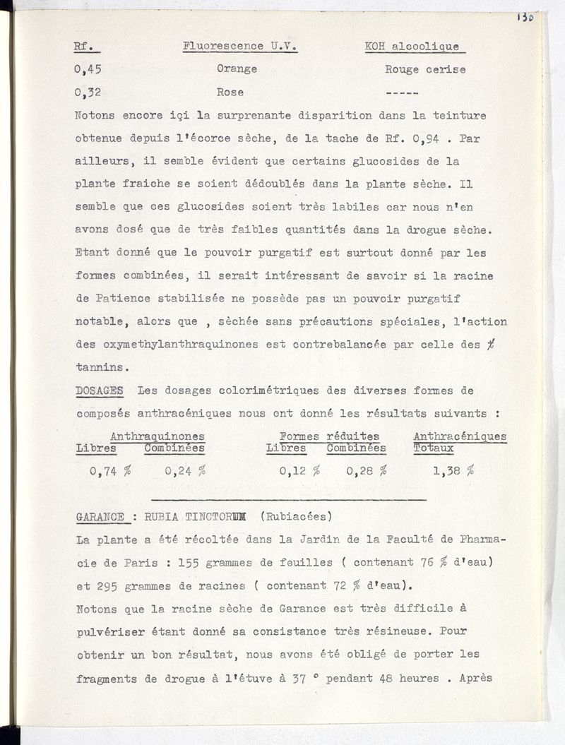 Les plantes indigènes à principe quinoniques