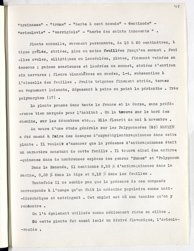 Les plantes indigènes à principe quinoniques