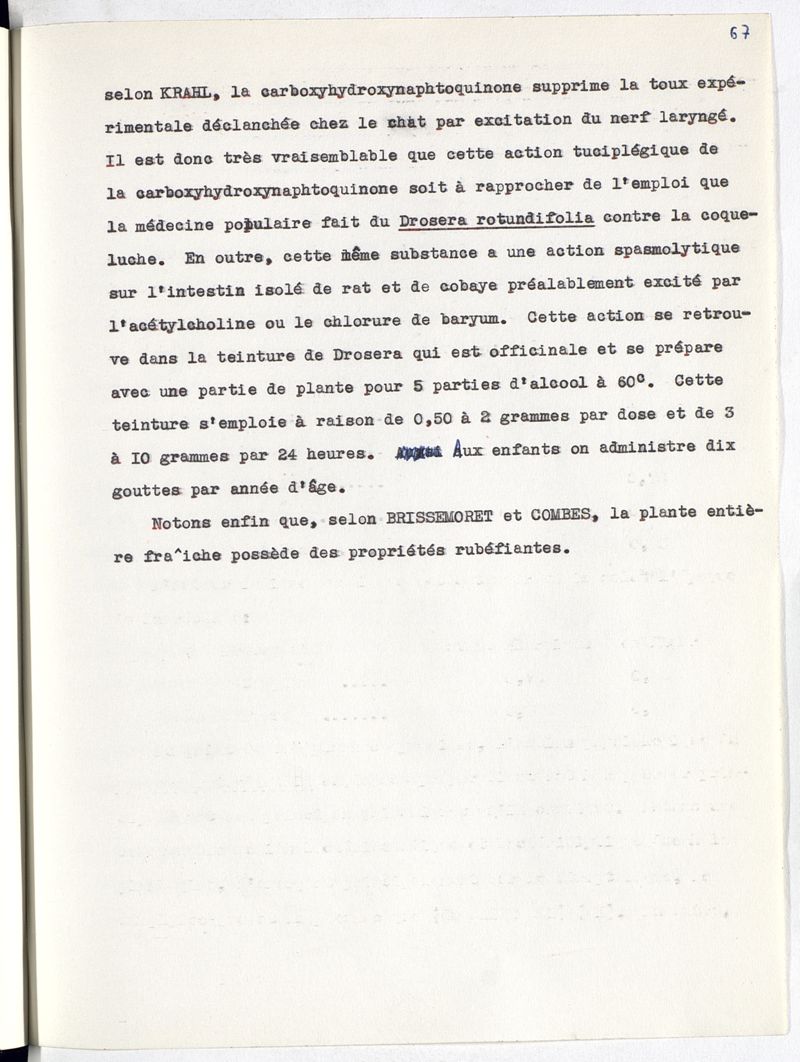 Les plantes indigènes à principe quinoniques