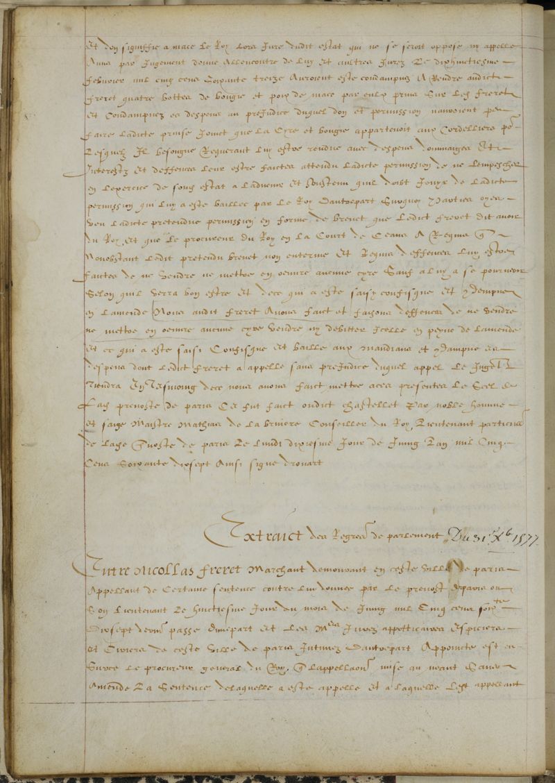 Arrêts du Parlement à partir du 13 mars 1556. Nominations à l'office de peseur au poids du roy. Election des gardes à partir de 1576. Inscription de différents apprentis aux examens de maîtrise.