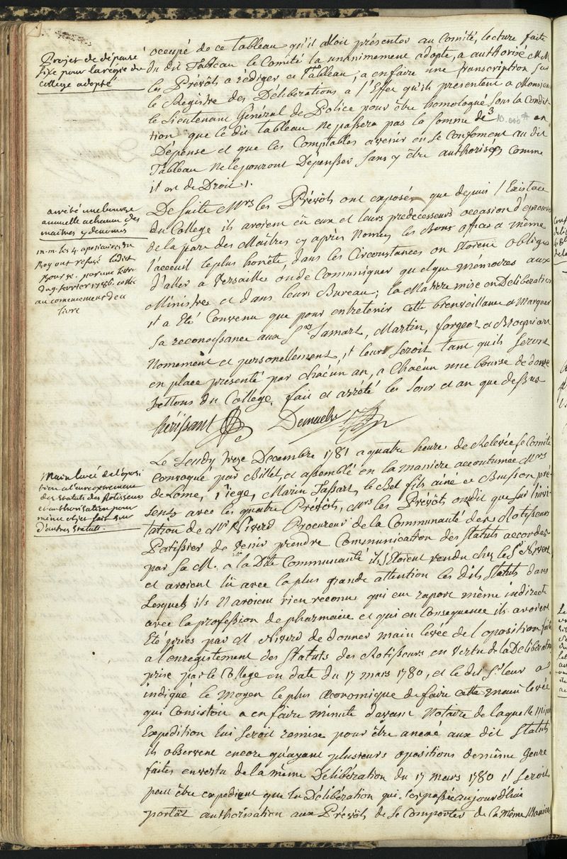 Livre des délibérations, 1777-1797 : statuts et pièces concernant la Pharmacie ; règlement du Collège de Pharmacie, ouverture du Collège et délibérations du Collège et de la Société libre des Pharmaciens de Paris, du 11 juillet 1777 au 26 octobre 1797.