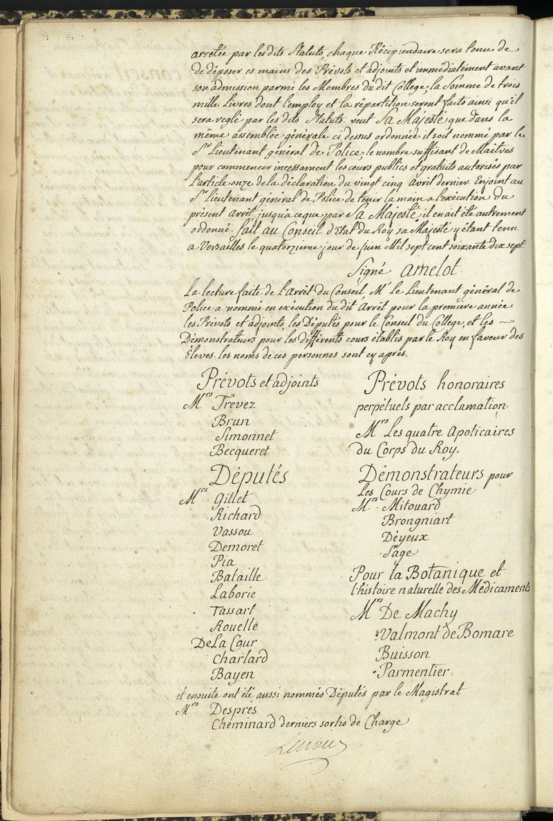 Livre des délibérations, 1777-1797 : statuts et pièces concernant la Pharmacie ; règlement du Collège de Pharmacie, ouverture du Collège et délibérations du Collège et de la Société libre des Pharmaciens de Paris, du 11 juillet 1777 au 26 octobre 1797.