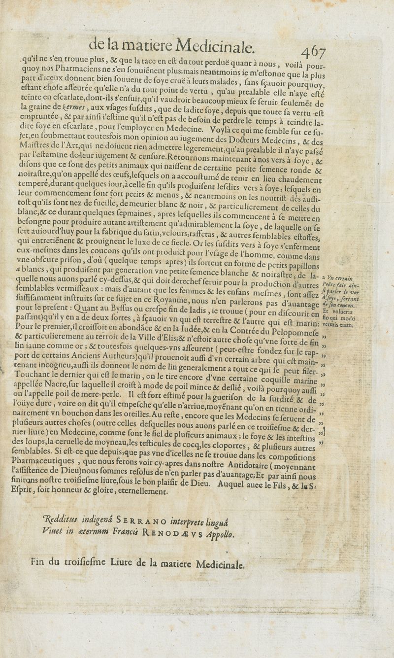 Les oeuvres pharmaceutiques du Sr Jean de Renou, conseiller & medecin du roy à Paris : augmentées d'un tiers en cette seconde edition par l'auteur : puis traduittes, embellies de plusieurs figures necessaires à la cognoissance de la medecine & pharmacie, & mises en lumière par M. Louys de Serres dauphinois, docteur en medecine, & aggregé à Lyon. [Suivi de :] Boutique pharmaceutique, ou Antidotaire, distingué en deux parties : la premiere desquelles traicte des medicamens interieurs, & la seconde des exterieurs. Avec une fort briefve, & tres-utile introduction pour tous ceux qui desireront avoir une particuliere entrée en la cognoissance de la pharmacie. Le tout premierement composé en latin, & mis en lumiere par le sieur Jean de Renou, conseiller & medecin du Roy, à Paris. Puis traduit en françois, illustré & augmenté d'un tiers en ceste seconde edition par Mr. Louys de Serres Dauphinois, D. en medecine, & aggregé à Lyon.