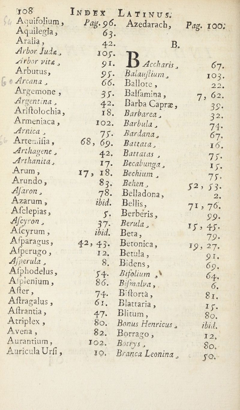 Catalogue des Plantes du Jardin de M.rs les Apoticaires de Paris, suivant leurs genres et les caractères des fleurs, conformément à la méthode de Monsieur Tournefort dans ses Instituts.