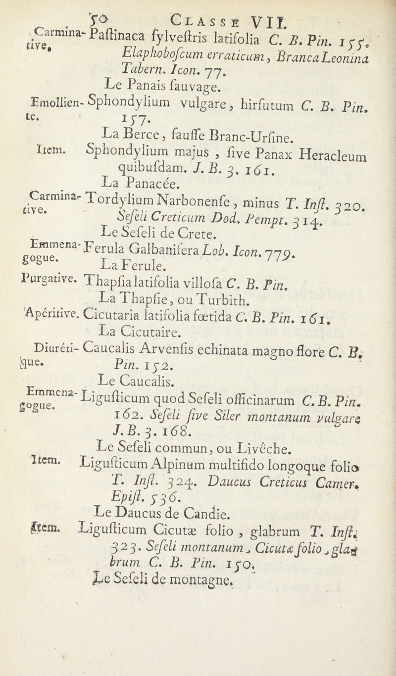 Catalogue des Plantes du Jardin de M.rs les Apoticaires de Paris, suivant leurs genres et les caractères des fleurs, conformément à la méthode de Monsieur Tournefort dans ses Instituts.