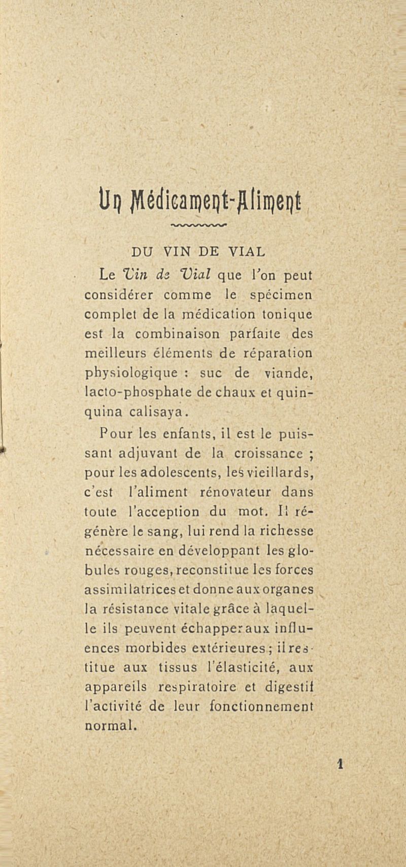 Un médicament aliment : vin de Vial
