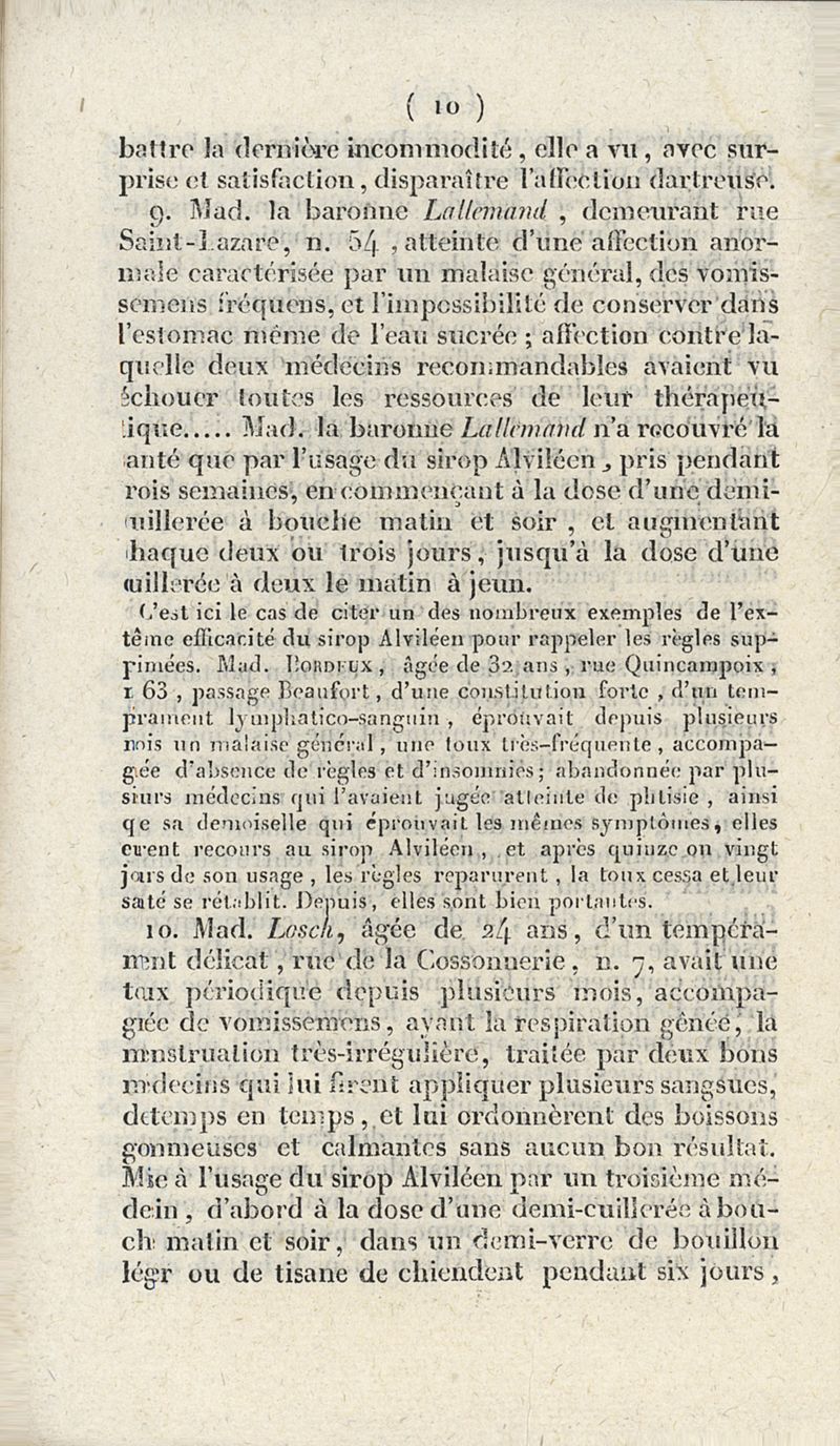 Aperçu général sur l'efficacité du Sirop Alviléen composé par Burq jeune, pharmacien, rue Saint-Lazare, no. 4, Chaussée d'Antin, près du Faubourg Montmartre