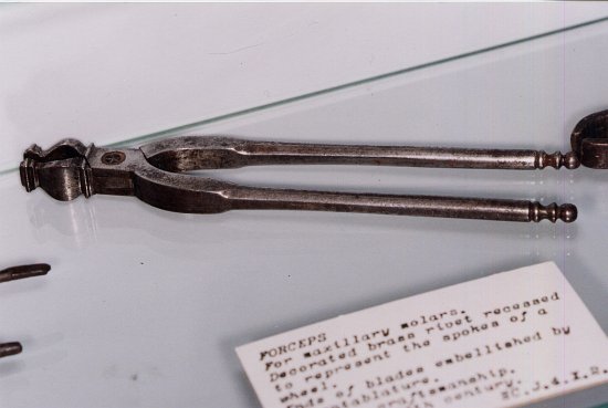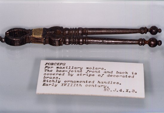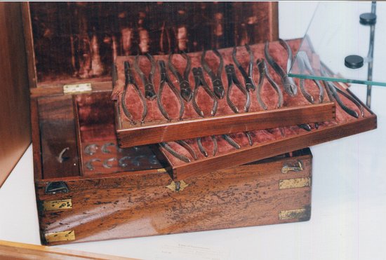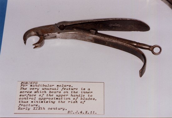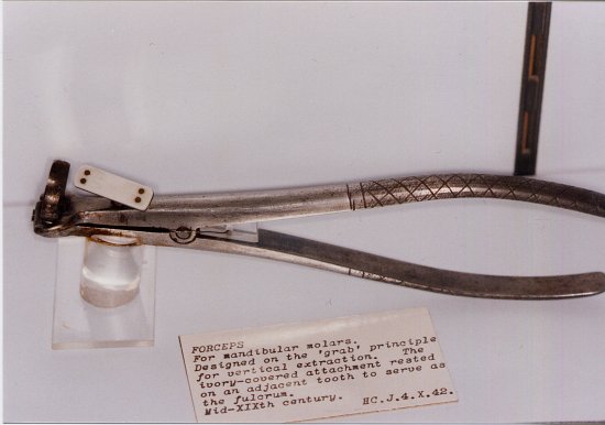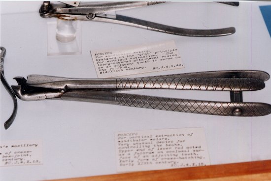 Le musée dentaire possède une rare collection d'instruments pour extraction. Nous avons dû choisir parmi les pièces les plus intéressantes :