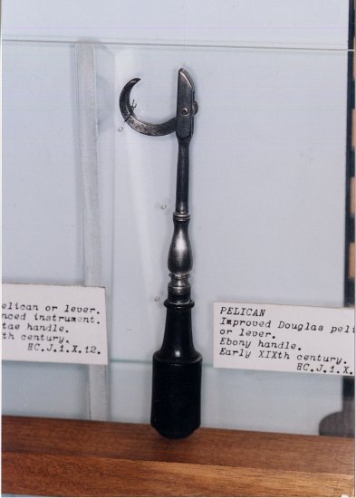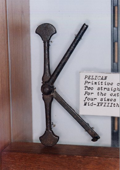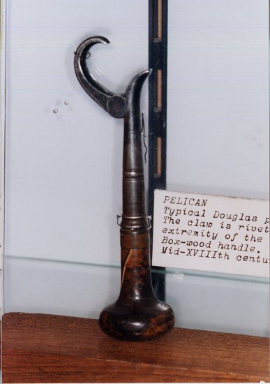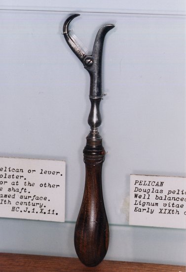 L'aspect brillant semble avoir été obtenu par martèlement d'étain sur l'acier. très proche d'un Pélican dans Armamentarium chirurgicum selectum de F.X.Rudtorffer (1817). |