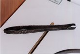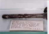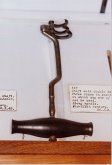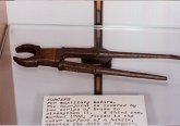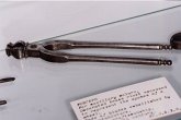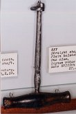 | Davier pour molaire supérieure. Coiffage du rivetage par apport de laiton. Réparation d'un manche marquée 1706 |