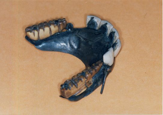 Partiel inférieur sur base ivoire d'hippopotame avec dents naturelles rapportées |