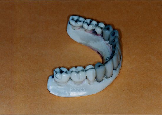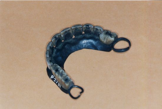 La collection dentaire comporte aussi environ 170 prothèses dentaires. Nous en avons sélectionné quelques-unes parmi les plus typiques :