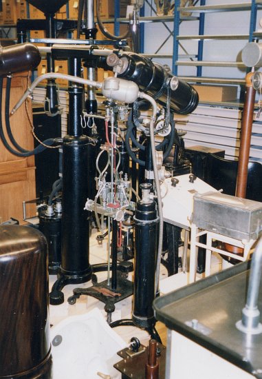 Statif porte tube de Crookes et son générateur à deux colonnes. Siemens 1915 |