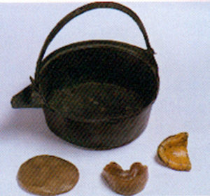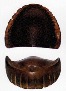 La date de fabrication est estimée vers 700 (à gauche : en pierre – à droite : en ébène)