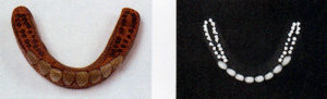La plus ancienne prothèse totale trouvée datant de 1538 .Elle fut portée par une femme moine de 76 ans du nom de Hotoke-kime