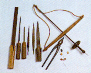 Deux artisans dans un atelier de prothèse et leurs trousses d’outils