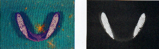 Soit par des fils de soie à la plaque