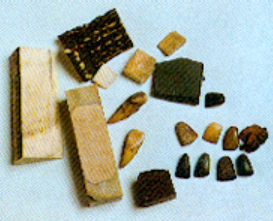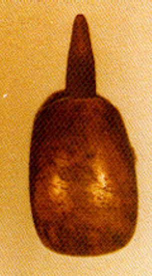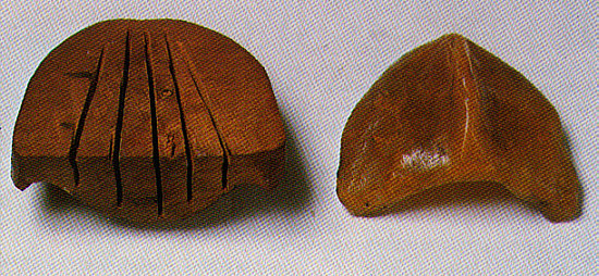 La date de fabrication est estimée vers 700 (à gauche : en pierre – à droite : en ébène)