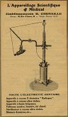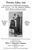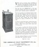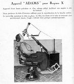 En 1918, ce fabricant présente un appareil où le tube radiogène et les bras supports sont fixés sur le coffre renfermant le transformateur. L’appareil est présenté avec le nécessaire de développement.