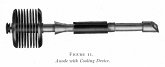 un refroidissement de l’anticathode assuré par un radiateur à ailettes. Faute d’un refroidissement suffisant l’anode serait portée au rouge et émettrait à son tour des électrons. Pilon, qui à l’exclusivité du tube Coolidge pour la France, ajoute une anticathode refroidie par eau.
