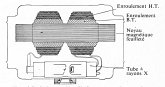 Le tube et le transformateur sectionné avec un enroulement sousvolteur qui assure le chauffage de la cathode et un enroulement survolteur pour la haute tension, peuvent dès lors cohabiter dans une petite cuve étanche connectée à la masse, ce qui de ce fait, supprime le fil extérieur de haute tension.
